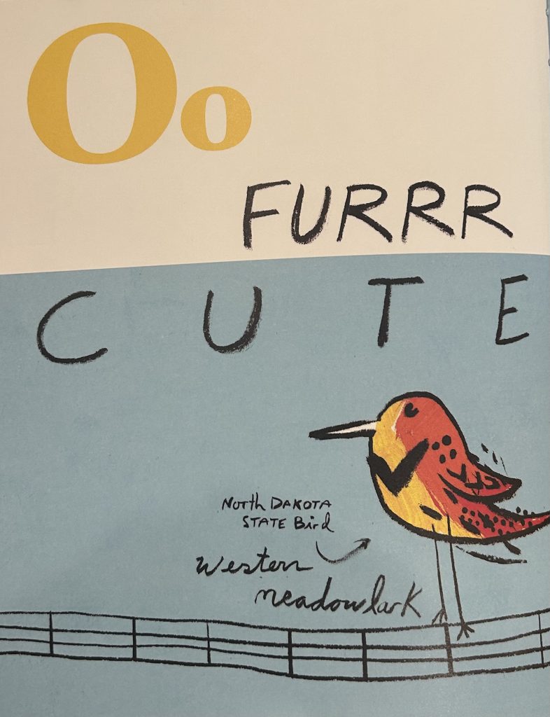 In April I was home for my nephew’s graduation from college. I went down Main street to check out the local shops and stopped in Main Street Books. Written by a local author, Max Patzner, and published in Minot, I grabbed the Alpha “Yeah Sure You Betcha ABC” book right off the shelf.